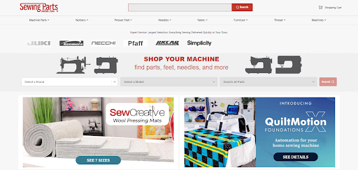 Sewing Parts Online supplies industrial sewing equipment and machine upgrade kits to small manufacturing shops and quilting production studios. Their catalog includes machines like the Juki TL-2000Qi, plus all related accessories and maintenance parts.